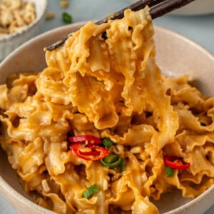 These spicy peanut butter noodles are best enjoyed fresh, as the sauce thickens and the noodles can become sticky as they sit. However, if you do have leftovers, store them in an airtight container in the fridge for up to 2 days.