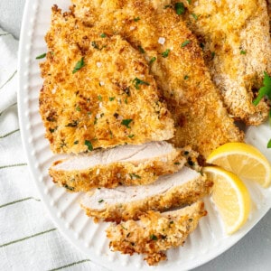 - Panko breadcrumbs – I like to use panko breadcrumbs for a super light and crispy coating for this schnitzel but any dried breadcrumbs you have will work. I recommend using dried not fresh for this recipe to ensure the best crispy result.