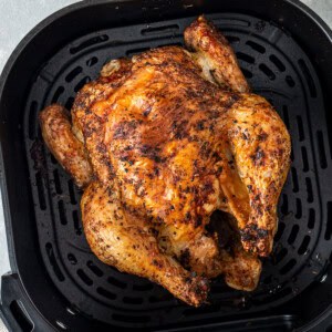 Yes! Depending on the size of your air fryer, you may want to cook a different sized chicken. For a larger chicken, increase the cooking time and check for doneness with a meat thermometer. A smaller chicken may need less time, so start checking around the 40-minute mark.