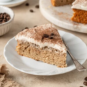 This cake recipe is designed to be super simple. It’s the kind of cake you can whip up quickly using ingredients that you already have in your pantry. The cake is beautiful served with a light and thick vegan coffee buttercream, but honestly it’s also delicious without it!
