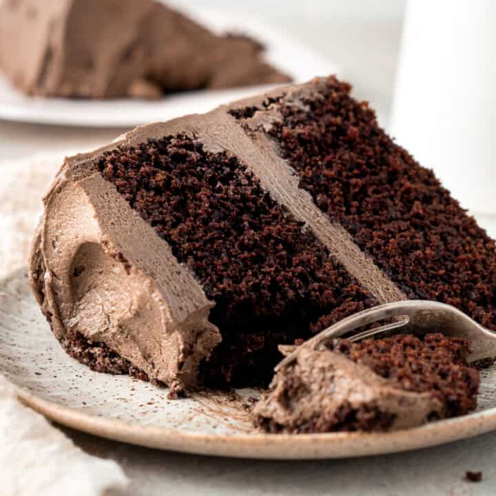 This one bowl vegan chocolate cake is really the only cake recipe you NEED in your repertoire. Using simple ingredients, this is the easiest cake recipe you will ever make. The cake is soft and tender with a rich, dark chocolate flavour and is topped with my go-to vegan fudgy chocolate buttercream. It's just so good!
