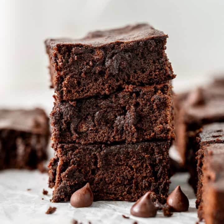 This recipe for dairy free chocolate brownies is the one I keep coming back to when I am looking for a quick and delicious chocolate treat. These soft and fudgy brownies only take 20 minutes to bake, plus they are completely dairy free and can easily be made gluten free as well. They are the perfect treat to satisfy that chocolate craving.