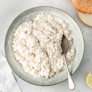 This dairy free cottage cheese uses just 4 ingredients, 1 bowl, and takes 5 minutes to make! If you’re sick of missing out on all the cottage cheese recipes because you’re dairy free, then this vegan version is going to be a must make!
