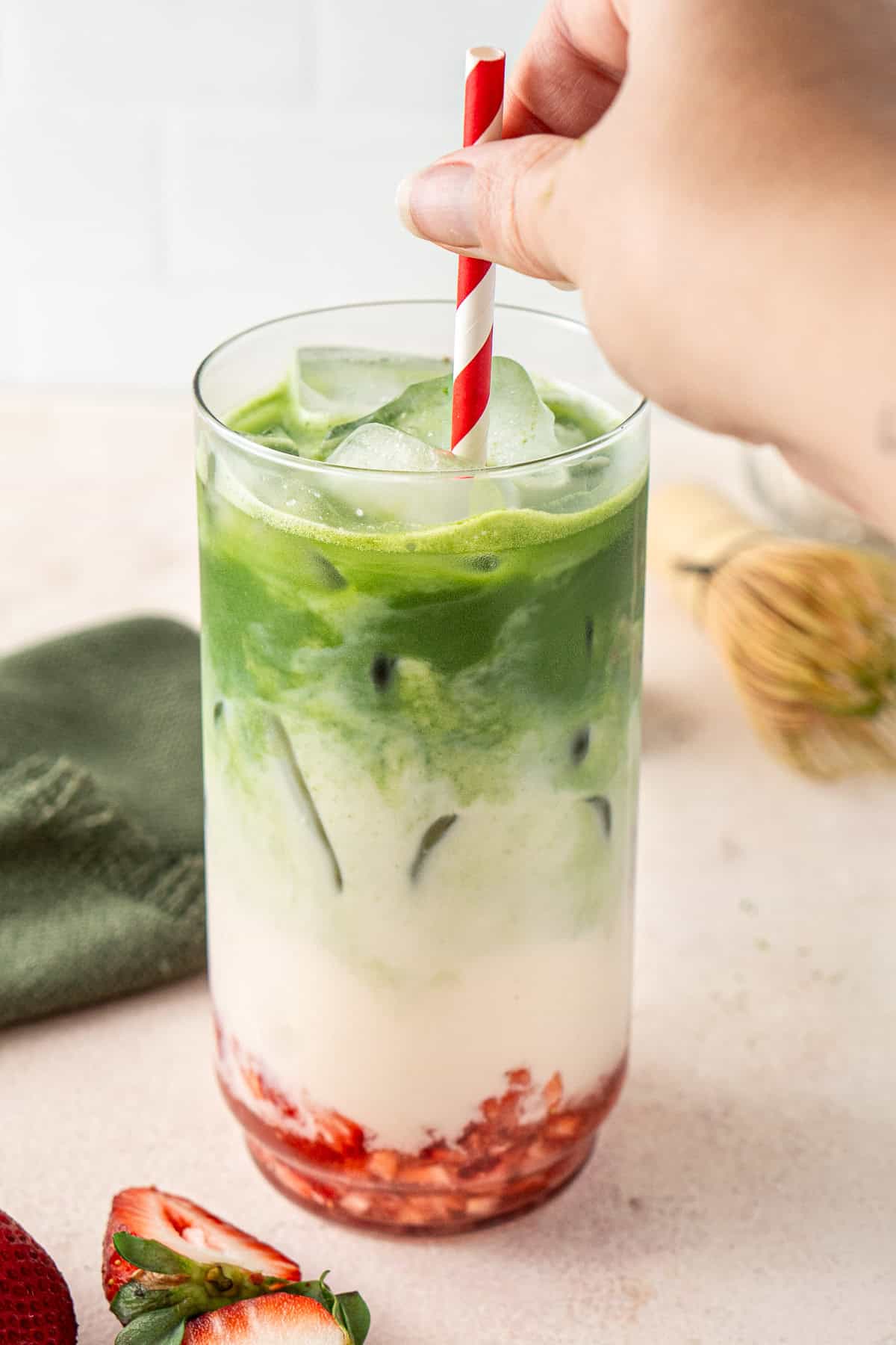 This iced strawberry matcha latte is such a fun drink to make on the weekend or whenever you want a little pick-me-up that feels a bit bougie. If you love fruity drinks or you’re matcha-curious, this is a fun one to try. You can also easily swap the strawberries for blueberries or any other berries you like.