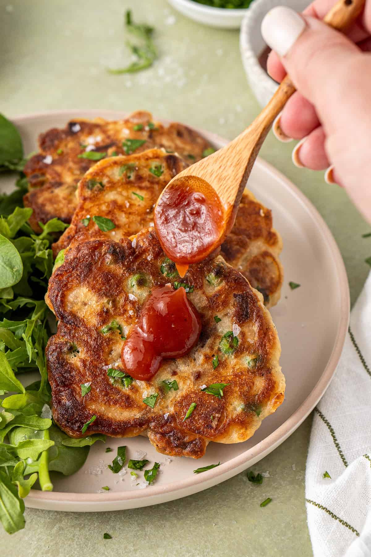 - With a Sauce – fritters are made for a delicious dipping sauce. Try it with tomato and capsicum chutney, aioli, or a classic tomato sauce. A creamy mayo or dairy free Greek yogurt also works well!