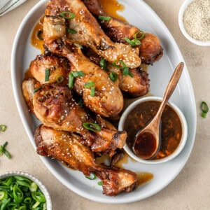 This is a great recipe for meal prep as it makes a good amount with little effort. To store the chicken, start by allowing it to cool at room temperature before transferring the drumsticks and sauce to an airtight container. Store in the fridge for up to 3 days.