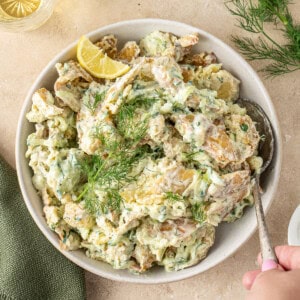 - Dill – I love using fresh dill in this potato salad as I think it helps give that classic tzatziki flavour but you can also use fresh parsley or even chives if you prefer.