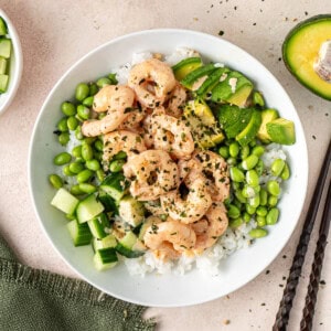 These spicy prawn rice bowls are quick, easy and delicious – perfect for weeknights! This healthy, sushi-style bowl comes together in under 20 minutes and can be easily customised based on your tastes.
