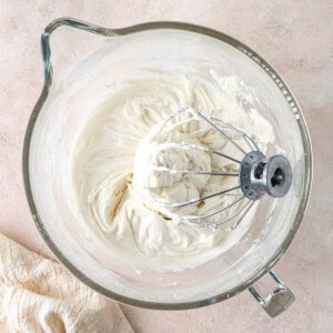 Add to a piping bag or spoon directly onto your cake. This amount will generously frost a batch of 12-16 cupcakes or a 2 layer, 8 inch cake. Any leftovers can be kept tightly covered in the fridge for about a week. Just be sure to beat it again before using it to get the best, creamy results.