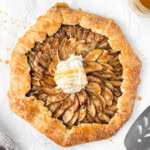 This homemade caramel apple galette combines slices of fresh apples, sweet caramel, and warming spices, tucked into an easy dairy free pastry crust. This rustic dessert has all the flavours of a classic apple pie with a fraction of the work.