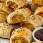 These chicken sausage rolls will be the first to go on your party platter! Made with simple, everyday ingredients, the filling comes together in no time thanks to the food processor. It’s then wrapped in golden, flaky puff pastry for a delicious, bakery-style finish that everyone will love.