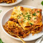 This dairy free lasagne recipe has all the cosy and comforting flavours of the family favourite recipe you know and love, just without the dairy. With layers of rich beef sauce, tender pasta, and a creamy, ‘cheesy’ béchamel, this is the recipe I’ve perfected over the last 10 years of being dairy free. Serve it up to friends and family and watch them go back for seconds!