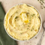 These creamy dairy free mashed potatoes are so good, you honestly won’t miss the dairy at all! Made with oat milk and vegan butter, this easy dairy free mashed potato recipe is the perfect side to pair with just about anything!