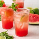 This easy sparkling watermelon lime mocktail is the perfect refreshing drink for summer. Made with fresh watermelon, lime juice and topped with soda water and mint, this is the drink you’ll want to sip on if you’re sober, driving, or just need a break from the booze.