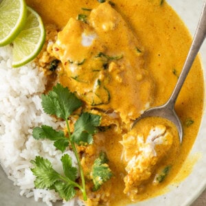 This is a no-fuss yellow fish curry that’s easy enough for a weeknight but still packed with flavour. It might just become your favourite way to eat fish! The sauce comes together quickly, with the fish gently poached in the curry sauce for a simple one-pan dinner that’s ready in under 30 minutes.